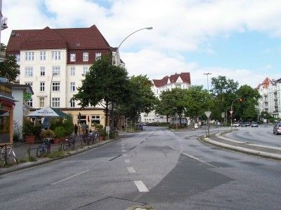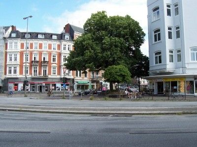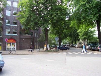 Blick in den Eppendorfer Baum, mit U-Bahnhaltestelle (U1 und U3 des HVV (www.hvv.de) , hier gibt es einen Supermarkt, die Buchhandlung Heymann(www.heymann-buecher.de)und unzählige kleine Spezialgeschäfte wie z.B. Violas (www.violas.de) oder das Weinhaus Gröhl (www.weinhaus-groehl.de)