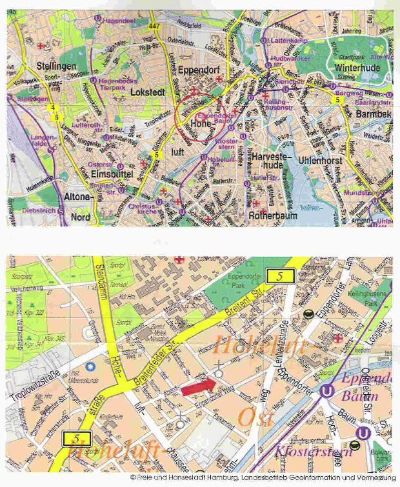 Weiter "Highlights" in dieser Richtung und im wirklich nahen Umkreis: Falkenried-Piazza, der Ise-Wochenmarkt (Di.u.Fr. vormittags), das Holi-Kino (www.cinemaxx.de/programm/info.asp?Center=D203) und die Hoheluftchausse mit vielen weiteren Geschäften, Restaurants, Supermärkten und der Busline 5 in die Innenstadt. Nahegelegenen Schwimmbäder sind das Kaifubad und das Holthusenbad, beide mit Freibecken (www.baederland.de)