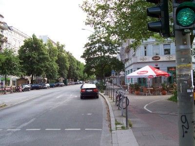 Eppendorfer Weg, Richtung Eppendorfer Baum/Lenhartzstr. In dieser Straße gibt es eine Eisdiele, viele Restaurants & Cafés, einen Schneider, Kleidungsgeschäfte usw.
